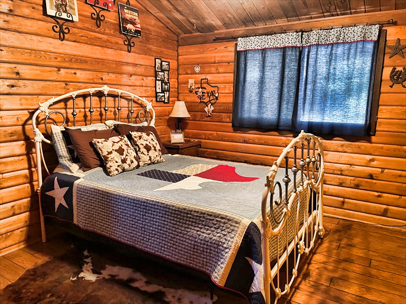 This cabin offers sleeping for 9, among 3 different bedrooms and the den.